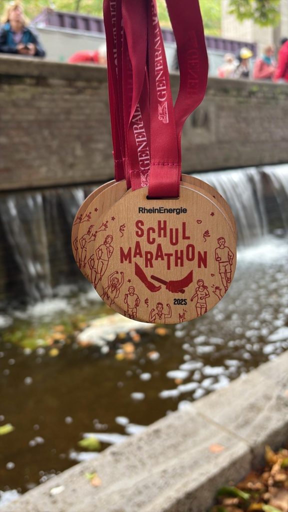 Am Sonntag, den 6. Oktober 2025 nahm unsere Schule mit gleich zwei Staffeln am Kölner Schulmarathon teil. Insgesamt stellten sich 16 Schülerinnen und Schüler aus allen Klassenstufen gemeinsam der sportlichen Herausforderung und liefen in beeindruckender Teamarbeit die Marathonstrecke in Etappen.